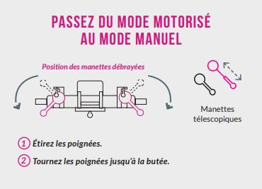 Vous retrouverez ainsi l’usage classique du fauteuil roulant, tout en gardant votre motorisation mise en place.